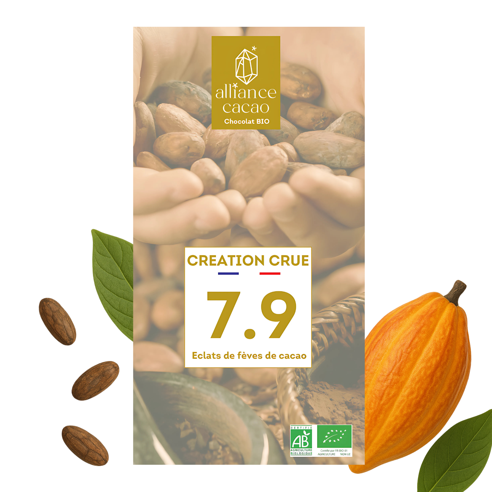 Création crue 7.9 est une préparation élaborée à partir de fèves de cacao Criollo NON torréfiées, pure origine Pérou.